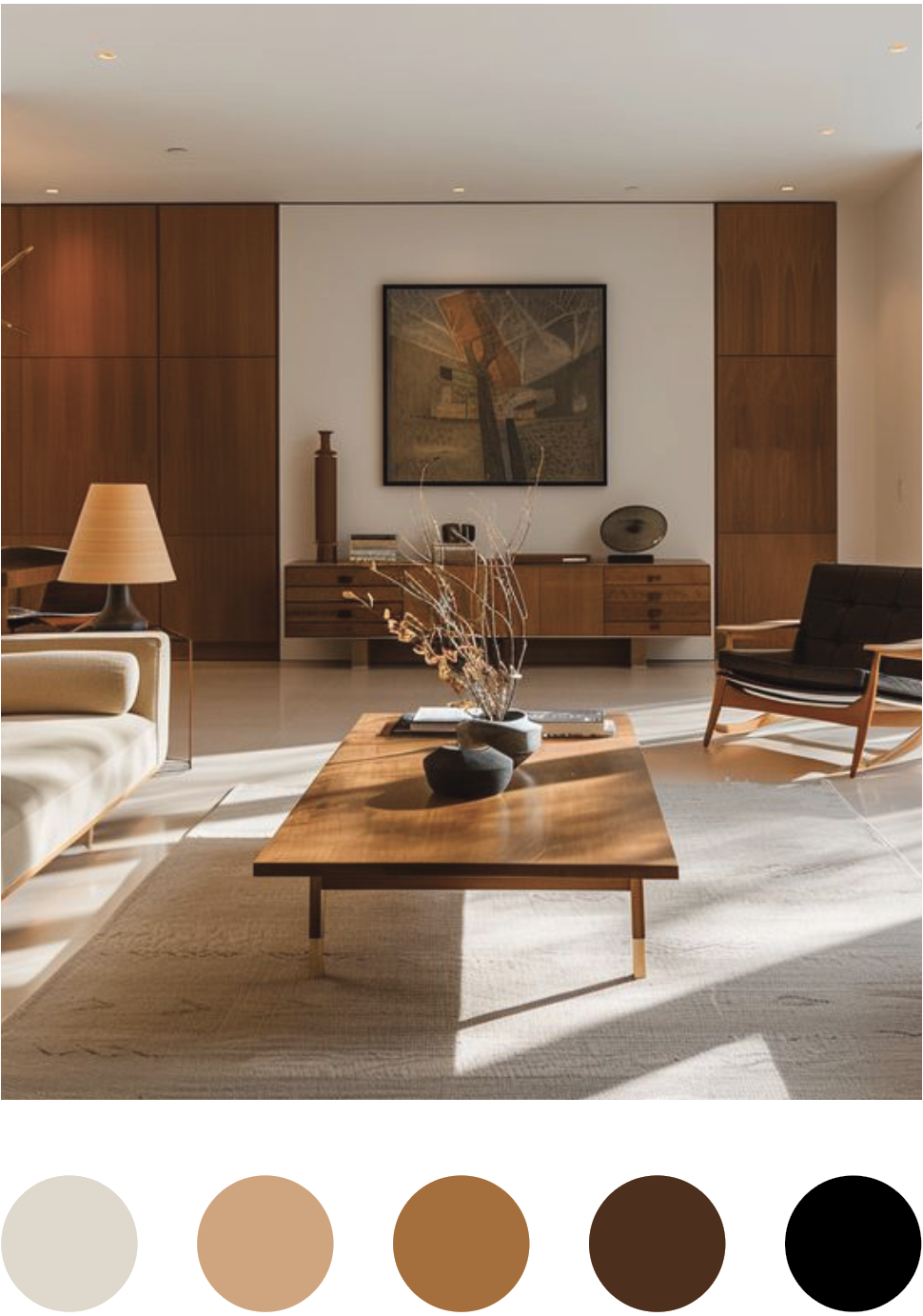 Charlotte and Weston James run an advertising agency together. They love the simple lines, natural materials and warm color palette of mid-century modern design,